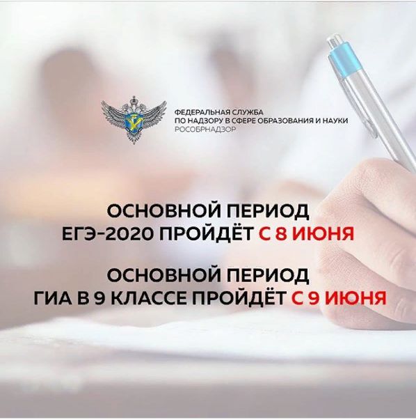 01.04.2020Сроки проведения ЕГЭ и ОГЭ переносятся. Об этом сегодня объявил министр просвещения Сергей Кравцов.⠀Экзамены для 11 классов начнутся с 8 июня, для 9 классов — с 9 июня. Такое решение принято в связи со складывающейся эпидемиологической обстановкой и объявлением следующей недели нерабочей.⠀Проект нового расписания сейчас корректируется и будет отправлен в регионы в ближайшие дни вместе с разъяснениями об организации работы.