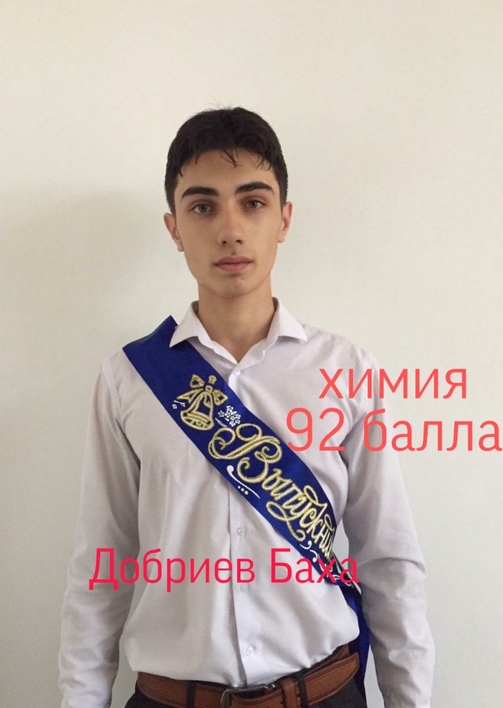 Выпускник 11 класса Добриев Баха 92 балла по химии. Самый высокий результат в Надтеречном районе.