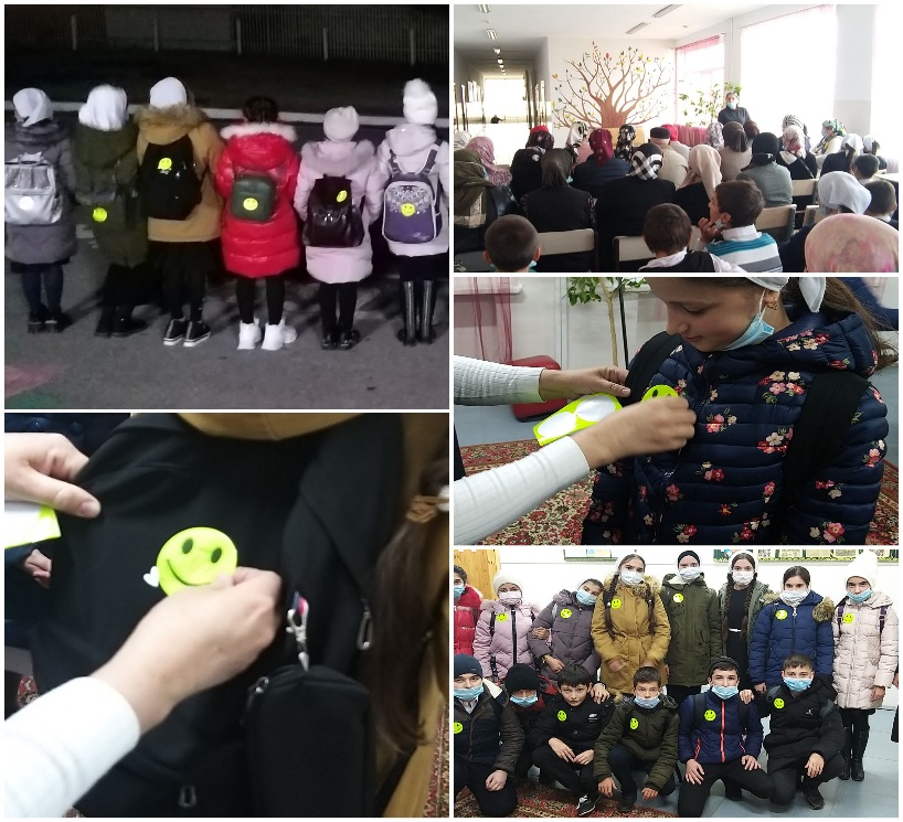 Директор школы Раиева М.С-А. обратилась собравшимся со словами: «Уважаемые родители, научите ребенка привычке соблюдать Правила дорожного движения. Побеспокойтесь о том, чтобы Ваш ребенок «засветился» на дороге. Примите меры к тому, чтобы на одежде у ребенка были светоотражающие элементы, делающие его очень заметным на дороге. Помните - в темной одежде маленького пешехода просто не видно водителю, а значит, есть опасность наезда».