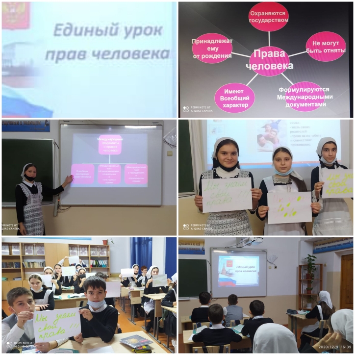14.12.2020Тематический урок 6 «В» кл. «Права человека. Права ребенка» Что я знаю о своих правах».При подготовке этого урока были учтены возрастные особенности детей. Презентация, использование ИКТ позволили разнообразить формы и методы работы на данном мероприятии, активизировать познавательную деятельность учащихся, оживить занятия, сделать более интересным, а значит, и усвоение материала сделать более глубоким и прочным.