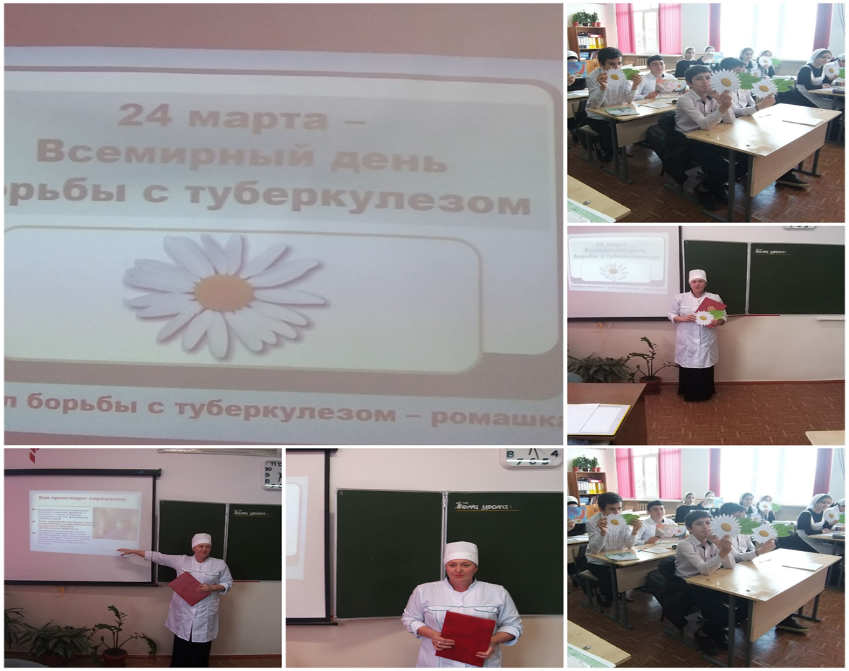 - В 6 - 8 классах проведена беседа медработником школы Добриевой Э.А. «Туберкулез-опасное заболевание». Из беседы учащиеся узнали о причинах развития туберкулёз, его осложнениях и о профилактических мерах. Медработник школы информировала учащихся о том, что Всемирный день борьбы с туберкулезом приходится на 24 марта по решению Всемирной организации здравоохранения в память того дня, когда 1882 году немецкий микробиолог Роберт Кох объявил о сделанном им открытии возбудителя туберкулеза.
