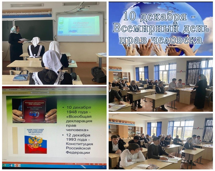 06.12.2021В рамках празднования Международного дня прав человека в 10-11 классах была организована акция - Всероссийский единый урок «Права человека», направленная на формирование правовой культуры молодых граждан нашей страны.