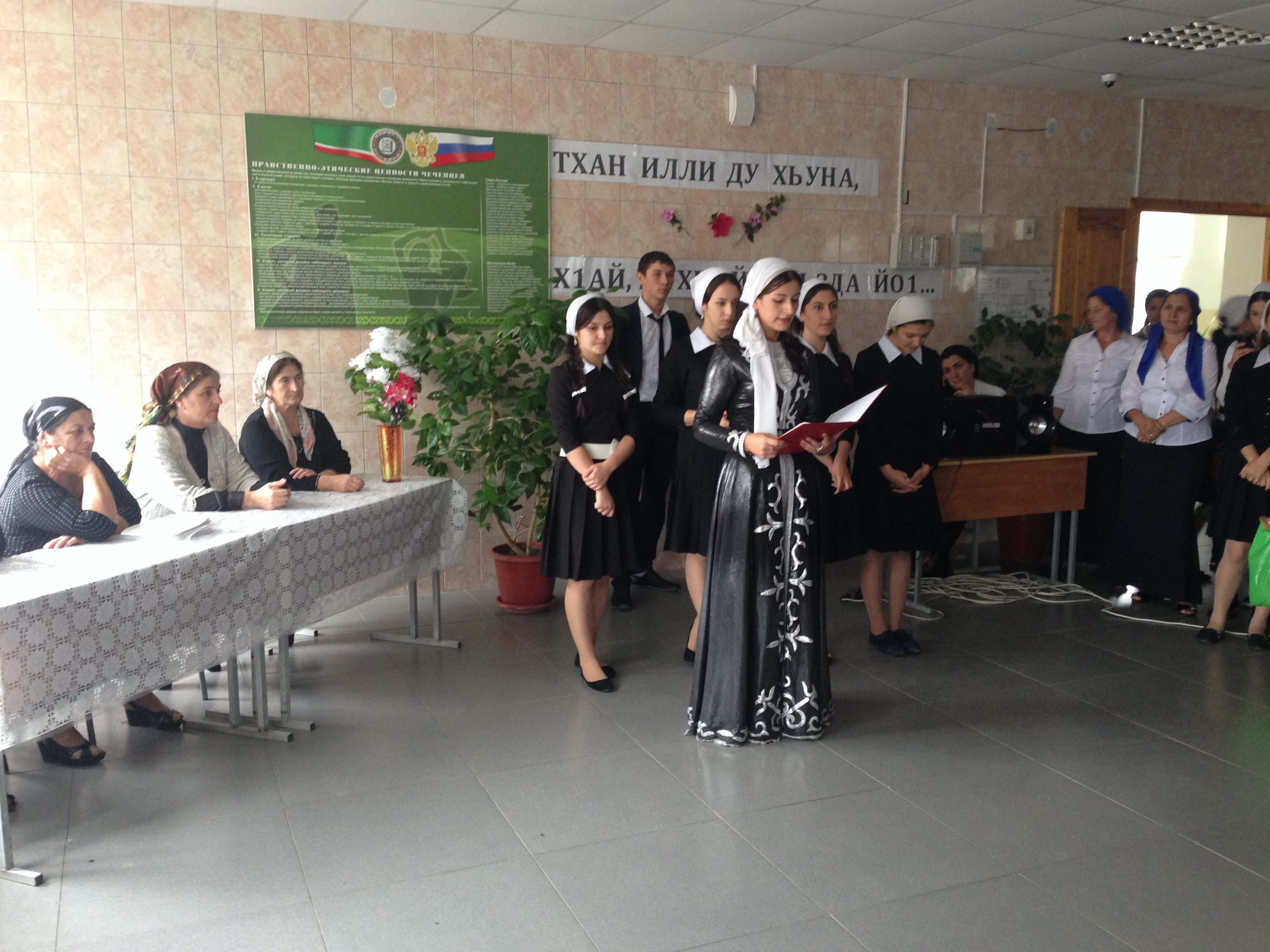 «Хочу выразить самые теплые слова в адрес чеченских женщин, прошедших через многие беды и испытания, но сумевших сохранить в своих детях любовь к родному краю, уважение к своему народу, к его обычаям и традициям», - сказала в своем выступлении директор школы Раиева М.С-А.