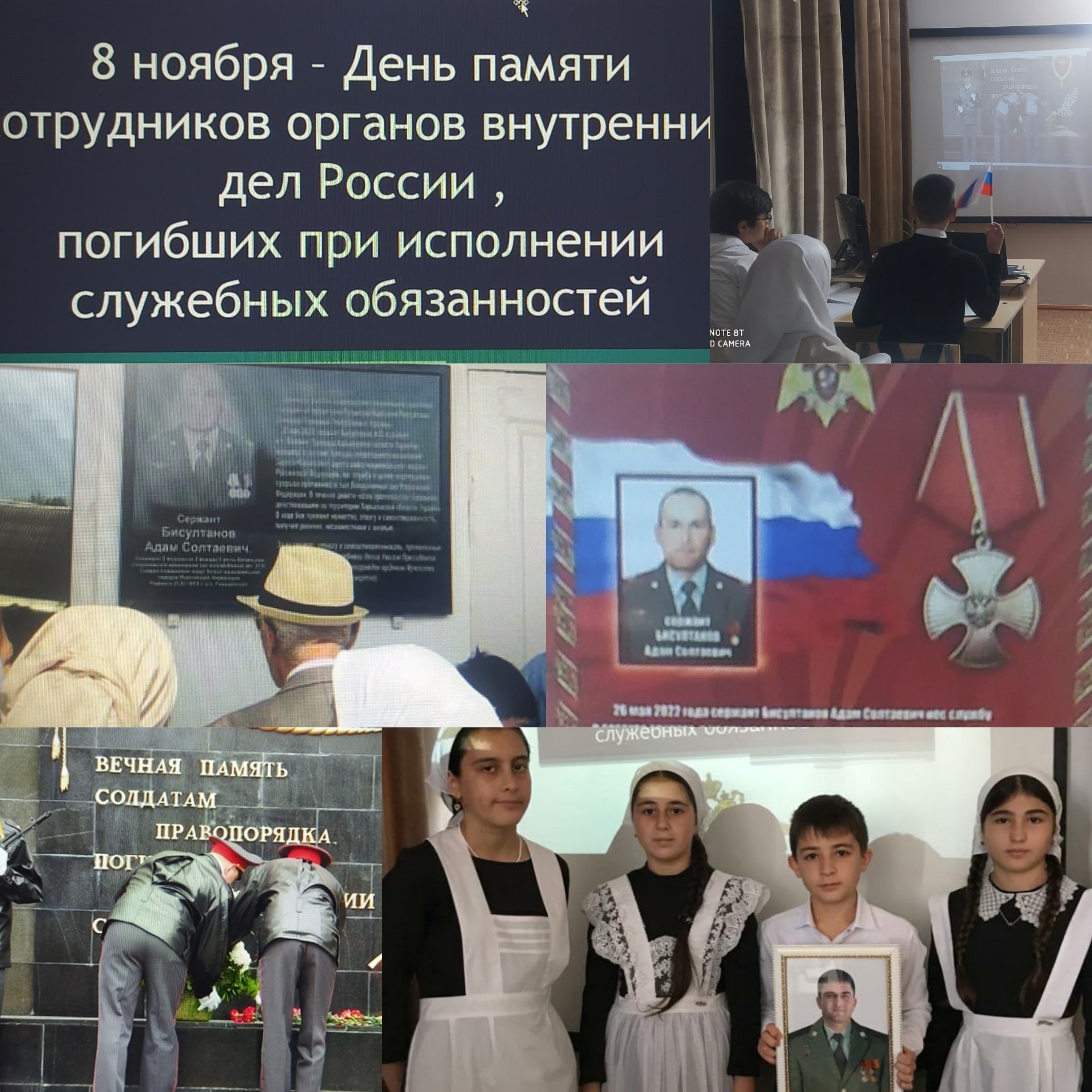 08.11.20248 ноября - День памяти погибших при исполнении служебных обязанностей сотрудников органов внутренних дел РоссииСоветник директора по воспитанию и взаимодействию с детскими общественными объединениями провела мероприятие «Из поколения в поколения, помним», которое было посвящено памяти погибших при исполнении служебных обязанностей.История МВД насчитывает бесчисленное количество примеров высокого профессионализма, героизма, мужества и благородства личного состава полицейских подразделений.Профессия сотрудника полиции – одна из самых опасных в современном мире. К сожалению, не обходится без боевых потерь.Около 15 тыс. сотрудников МВД России стали участниками специальной военной операции, 480 из них удостоены государственных наград, в том числе и два наших односельчанина -Бисултанов Адам Солтаевич и Сатуев Алик Магомедович. В честь этих героев названы улицы, на которых живут их семьи и близкие.