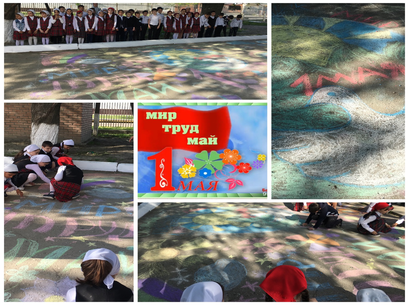 - Провели конкурс рисунка на асфальте «Мир! Труд! Май!» 3 кл.(Голтакова х.С.)